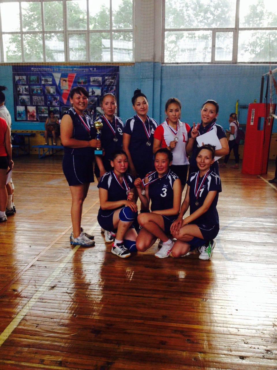 Инна Монгуш вторая слева во втором ряду в студенческой команде-победителе по волейболу