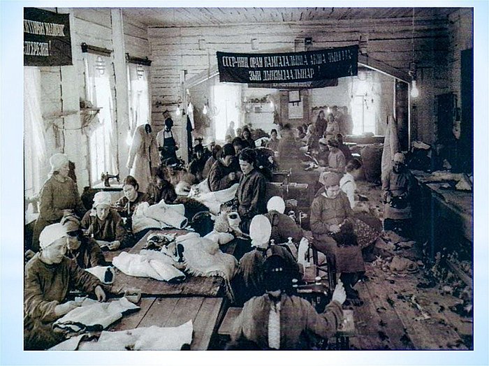 Женщины шьют полушубки для бойцов Красной Армии, 1942 г.