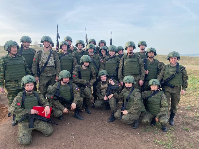 Тувиночки-медсестры Алдынай Натпий-оол, Буяна Кужугет и Виктория Молдурушку на полигоне части во время учебки