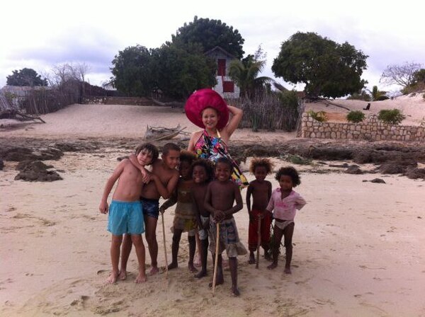 Ольга Донгак на Мадагаскаре в окружении местных ребятишек