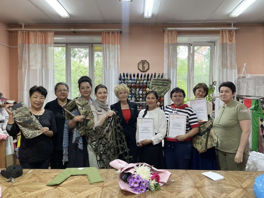 Все члены волонтёрской команды шьют на дому, а носилки собирают в цеху магазина тканей, на большом двухметровом щите. Эвакуационную стропу изготавливает подруга Натальи Юрьевны, она сапожница. Часть готовых изделий забирают бойцы, которые приезжают в Туву в отпуск, они их хвалят и говорят, что им защита пригодилась ни раз.