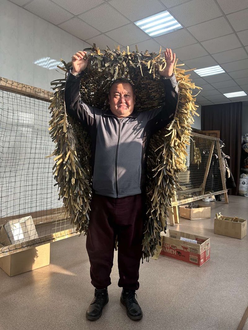 Он еще помог мне доставить продукты на передовую к моему бойцу-родственнику, его командир не отпустил к нам. Сначала я хотел на такси поехать, но так как путь опасный, местные таксисты берут за каждый километр тысячу рублей, итого ему надо было заплатить 40 тысяч. У меня таких денег не было, я сильно расстроился. И здесь на помощь пришел Варужан, он вызвался отвезти меня туда и обратно бесплатно, даже денег на бензин с меня отказался брать. На КПП нас не хотели пропускать, но Варужан их уболтал (смеется). И вот мы добрались до адреса, но дверь нам не открыли. Я умолял, говорил, что преодолел 6 тысяч километров, чтобы привезти мясо и продукты, но всё без толку. Нам ничего не оставалось, как развернуться, только мы отъехали, как дверь распахнулась, и оттуда выбежал мой Максим. Как же я обрадовался! Передали продукты, отварную баранину, пельмени – и обратно. Знаете, как нашу тувинскую баранину там любят? Все, кто её попробовал, распробовал, потом ждут только её. Летом, когда мы туда отправили мотоцикл, командиры спрашивали, не прислали ли мы еще баранину (смеется). Эта наша первая поездка пришлась на Шагаа, в Луганске мы провели обряд «сан салыр», попросили благословения у предков. Второй раз съездили туда через год, в 2024 году, тоже в феврале, уже в составе «Народного фронта». В этом году, если всё получится, хотим съездить летом. Жена, конечно, переживает за меня, все-таки там опасно, но я ей всегда говорю: «Не надо думать о плохом, нужно верить в лучшее». Мы с ней плетём маскировочные сети, с учениками делаем блиндажные свечи, на собранные земляками деньги покупаем генераторы и всё это отправляем туда. Я ощущаю себя тоже солдатом. Когда ребята просят меня о чем-то, для меня – это боевая задача, которую я должен во что бы то ни стало выполнить. Я считаю, что самая главная опора фронта – это тыл, ведь недаром фронтовых волонтеров называют солдатами тыла. Горжусь ли я собой? Я об этом никогда не думал (смеется). Просто помогаю, потому что так велит моё сердце!