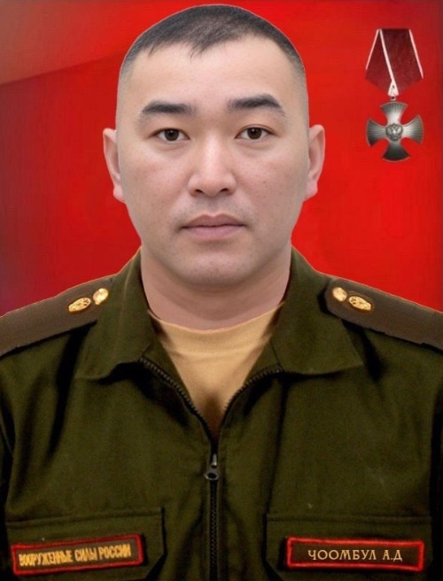 Рядовой, командир инженерно-саперного отделения 55-й отдельной гвардейской мотострелковой бригады А. Д. Чоомбул погиб 14 ноября 2023 года в боях за освобождение села Водяное ДНР, получив несовместимое с жизнью осколочное ранение в голову. У нашего земляка было множество ведомственных наград: медаль Министерства обороны РФ «За боевые отличия», памятная медаль «День Победы», медаль Суворова, ведомственная медаль
