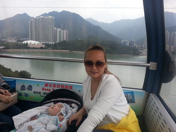 Ольга с младшей дочерью на фуникулере по пути к статуе Будды на горе. Гонконг