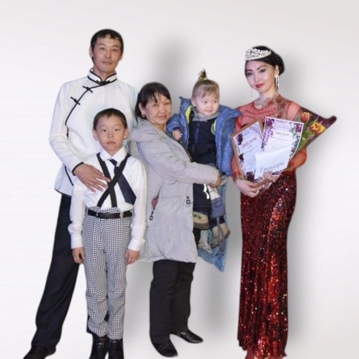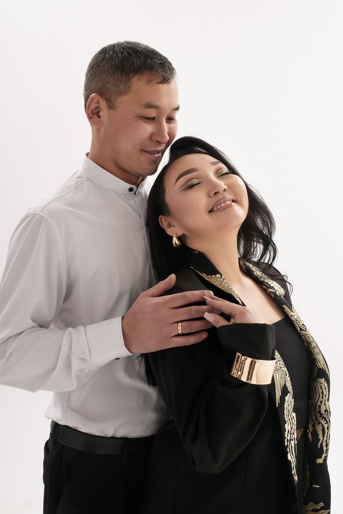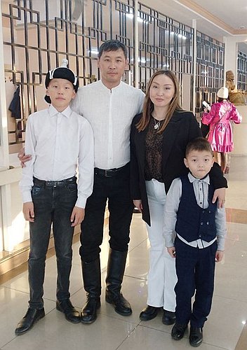 С мужем Айдыном Эрес-ооловичем мы познакомились, когда я работала в Доме культуры в Хову-Аксы. Он откуда-то нашел мой номер, позвонил, попросил выйти. Я удивилась, но вышла. Отвел меня в сторону и сказал: «Ты будешь моей невестой?». От неожиданности я опешила (смеется), а затем, вежливо с ним попрощавшись, ушла работать. Через два года, когда я о нем уже забыла, Айдын вдруг мне позвонил и сказал: «Будешь моей женой?». Так внезапно и неожиданно. Оказалось, что все эти годы он был в меня влюблен, но ему казалось, что у меня миллион поклонников. А у меня на самом деле из-за работы, из-за увлечений и занятости абсолютно не было времени на личную жизнь. В конце концов, не выдержав, решил, как говорится, «взять быка за рога» (смеется). Дальше события развивались стремительно. Знакомство с его мамой, с моими родителями, сватовство, женитьба, совместный быт, потом дети (улыбается), вот так и живем душа в душу. Айдын решительный, целеустремленный, лидер по натуре. Интересно, что со временем он стал моим партнером по танцам. В 2018 году мы принимали участие в Республиканском слете клубов «Молодая семья», где заняли 3 место. Затем в этом же году приняли участие в Республиканском турнире «Родительский бал – 2018», где заняли 2 место. А в первом Республиканском конкурсе среди молодых семей «Молодая семья – будущее Тувы» стали победителями сразу в двух номинациях: «Моя семья – моё богатство» и «Самая талантливая семья». В 2023 году мы заняли 2 место в региональном этапе Всероссийского конкурса «Молодая семья». Кроме танцев, Айдын освоил профессию закройщика, сейчас мы в ателье работаем вместе. А вообще изначально он по специальности сварщик, зарабатывал очень хорошо, кроме того, он обладает удивительной способностью договариваться с людьми.