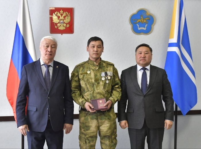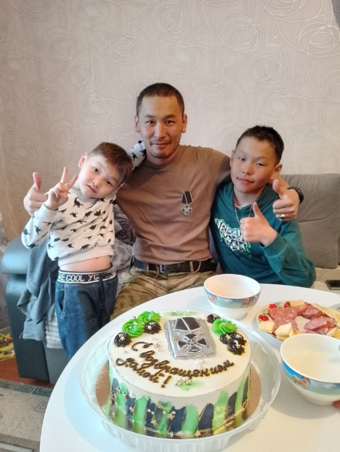 Айдын Эрес-оолович, супруг героини, получил заслуженную боевую награду – медаль «За отвагу», 2024 г.