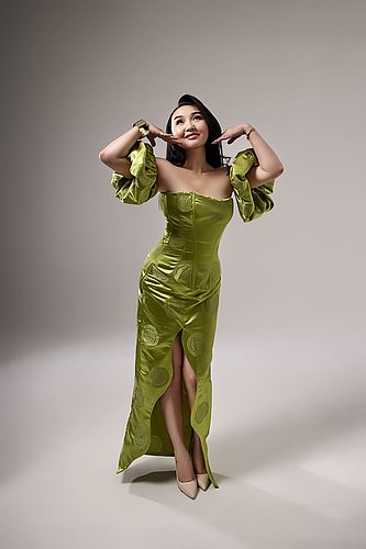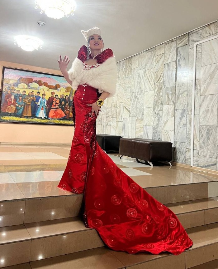 Солангы Ховалыг в вечернем наряде, который создала сама для участия в Республиканском конкурсе среди матерей «Кадын – 2025».